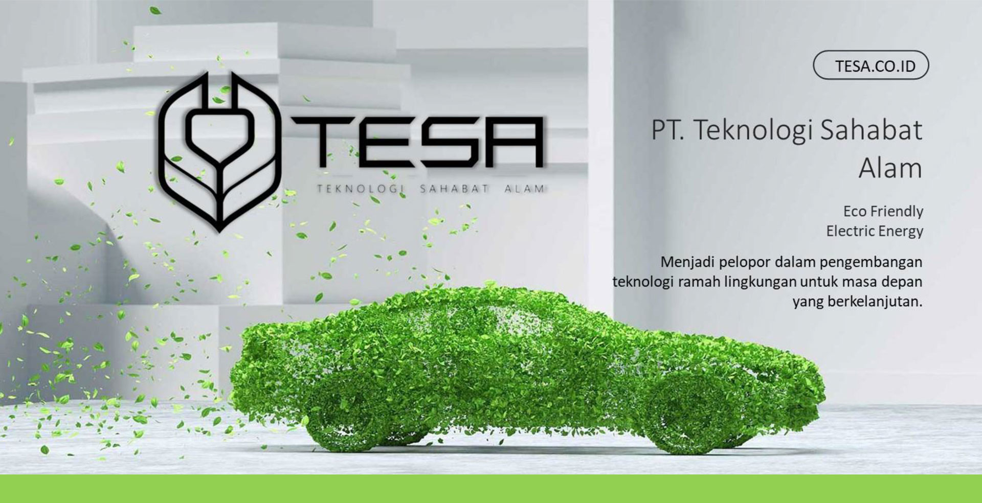 PT Teknologi Sahabat Alam (TESA) merupakan perusahaan yang berdedikasi untuk menghadirkan solusi teknologi canggih dalam mendukung peralihan menuju masa depan yang berkelanjutan dan ramah lingkungan. Dengan fokus pada pengembangan teknologi elektrik urban cargo, otomasi kendaraan listrik, konversi mobil menjadi listrik, produksi simulator mobil, kendaraan listrik utility, dan teknologi cetak 3D, kami berkomitmen untuk memperkenalkan inovasi yang mengubah paradigma di industri otomotif dan manufaktur.